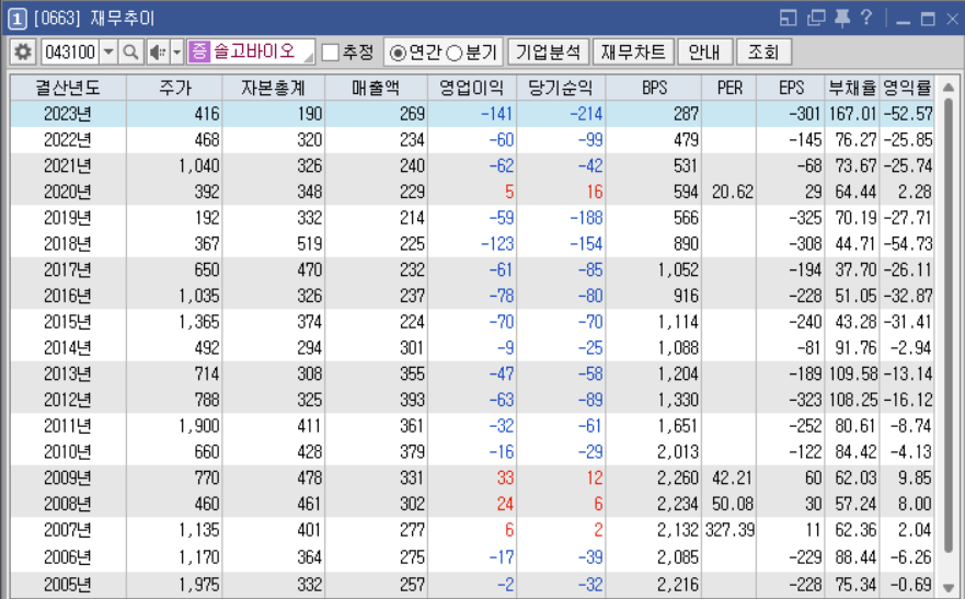 - 2022년 : 매출액 234억원 / 영업이익 -60억원 / 당기순이익 -99억원