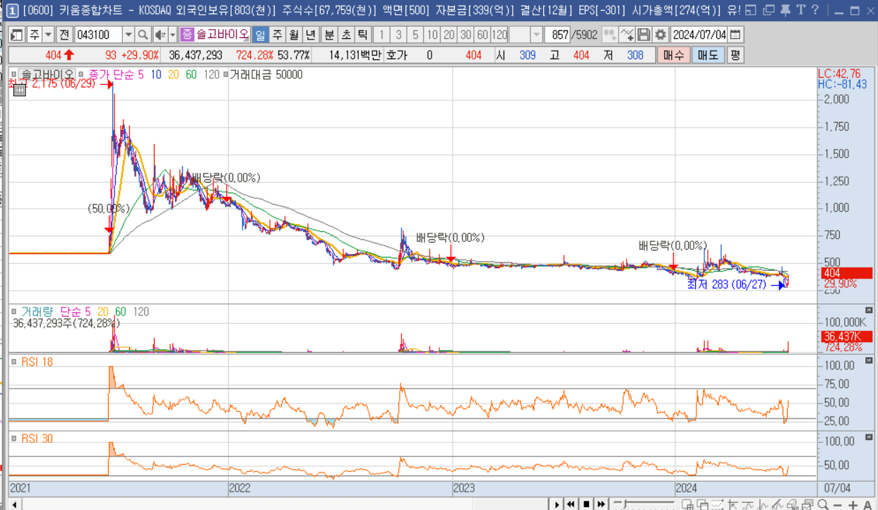 솔고바이오 주가가 상한가를 기록하면서 투자자들의 관심이 모이고 있다.